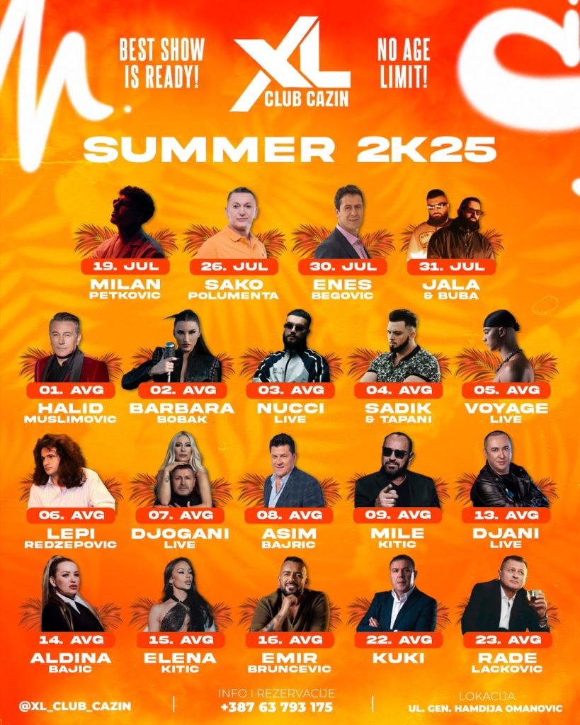 Ako ovog leta tražiš mesto gde muzika ne staje, atmosfera gori, a publika peva do zore, XL Club Cazin ti donosi program koji se ne propušta!